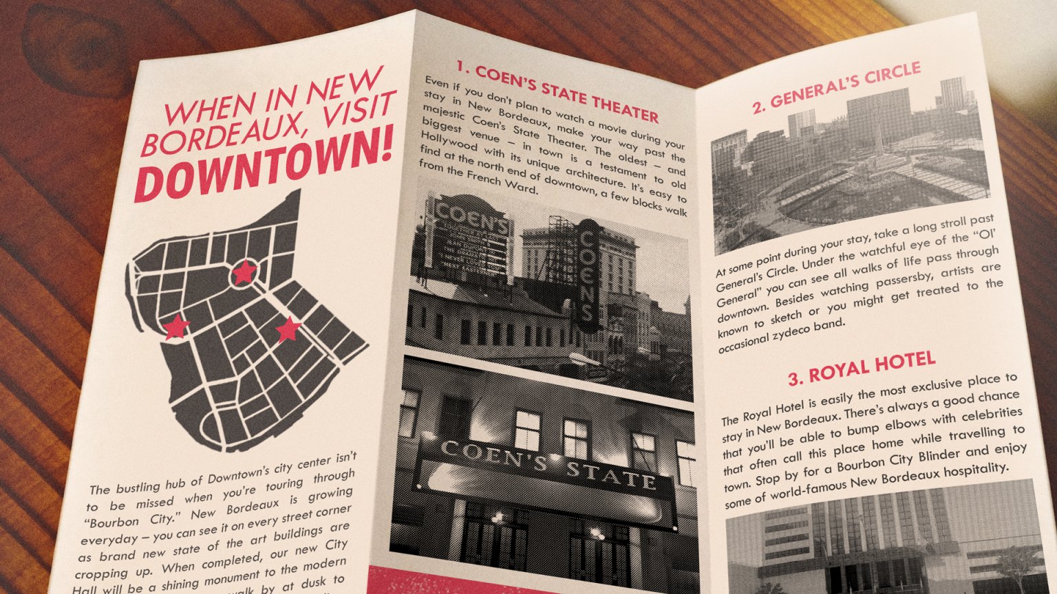 Mesto tvorí niekoľko štvrtí ako som spomínala vyššie. Táto brožúra nám približuje niektoré miesta, ktoré by "sme mali navštíviť" v centre mesta, tzv. Downtown. (pre zväčšenie kliknite na obr.)